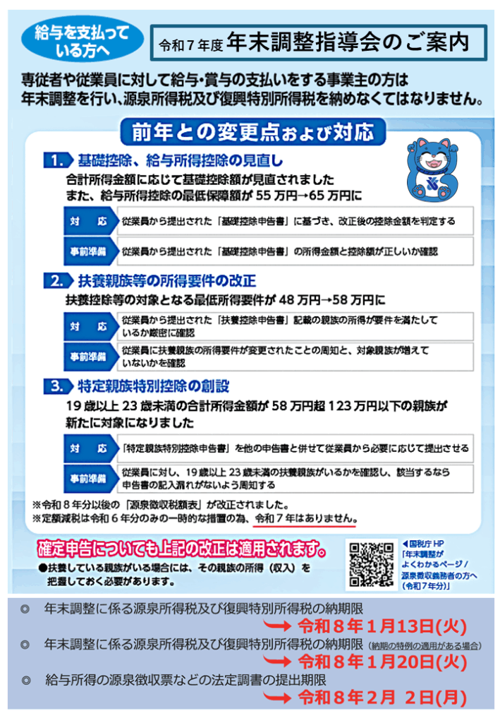 令和7年 年末調整指導会の案内