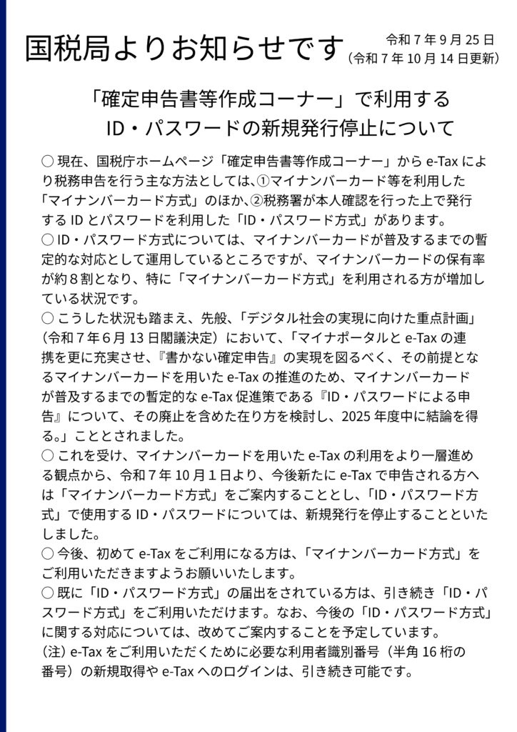 IDパスワード廃止のお知らせ